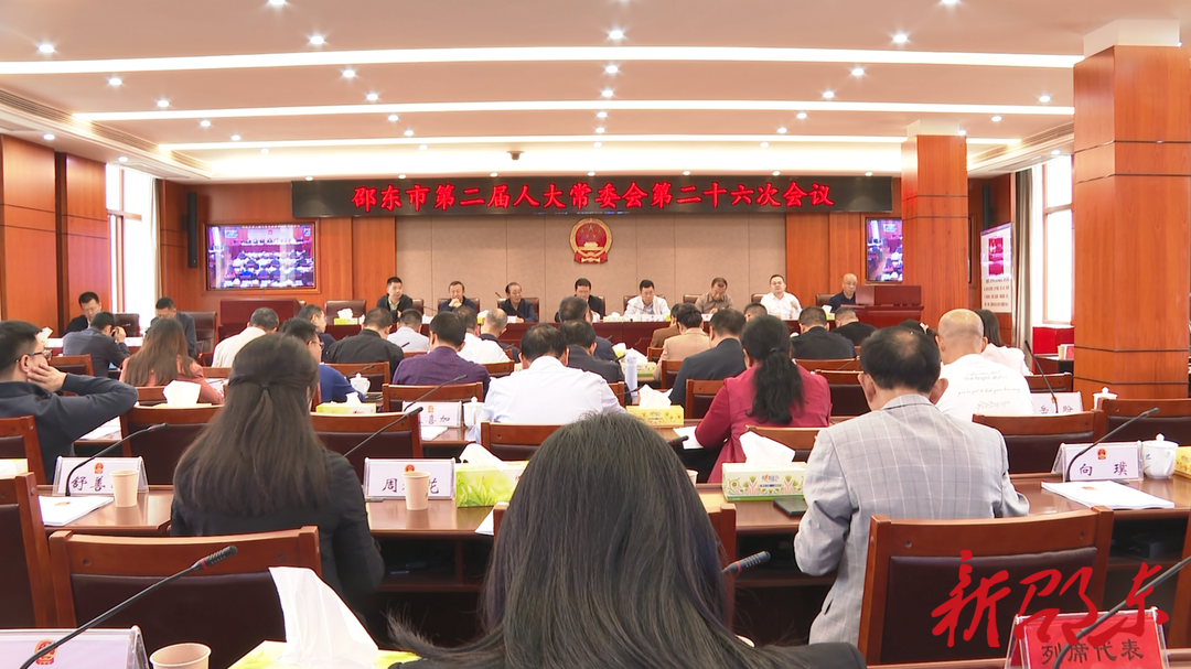 新邵东客户端4月19日讯(记者 姚天启)4月18日上午,邵东市第二届人大常委会第二十六次会议召开。市人大常委会党组书记、主任黄负平,市人大常委会党组副书记、副主任贺铁民,市人大常委会党组副书记罗飏,市人大常委会副主任申荣、曾铁钧、王卫平等出席会议,市委常委、常务副市长陈业华及市人民法院、市人民检察院等单位负责人列席会议。