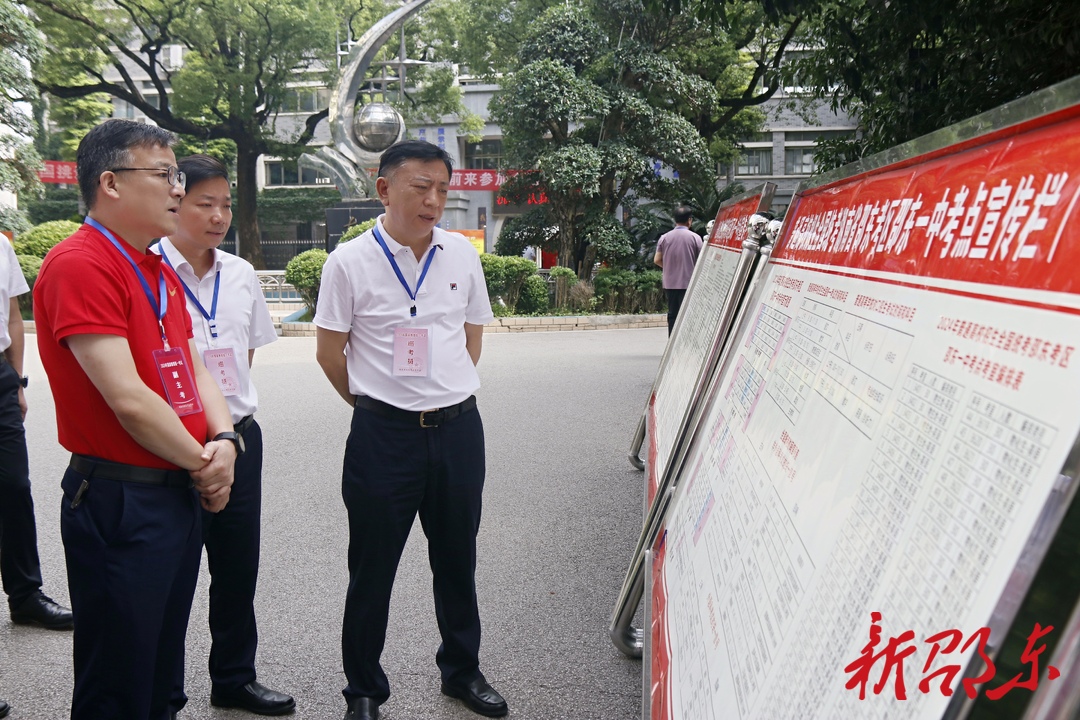 周玉凡一行先后来到邵东一中、振华中学考点,实地察看了考场外部环境、考场布局等,认真听取考务工作情况汇报,详细了解考务安排、考场设置、后勤保障、安全保卫、监控设备运行管理及应急预案制定等情况,并对全体考务人员的辛勤值守表示慰问和感谢。
