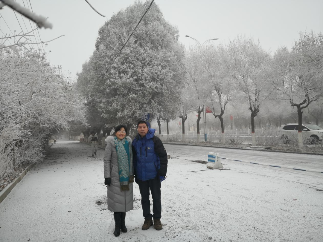 这边的工作渐渐得心应手,可是,更大的困难和挑战还在前方。2019年暑假,援疆时间刚好过半,申老师突然收到爱人被诊断为肺癌的消息,可是既不敢对爱人说实情,也不敢告诉留学的儿子,只有等爱人熟睡后,才能独自啜泣。万幸的是,在医生的精心治疗下,申老师爱人的病情得到控制。可她再次面临艰难抉择:一边是新疆的孩子们,一边是术后的爱人,申老师在心中痛苦地呼喊:“世间安得双全法?”她的爱人刘贤忠老师看在眼里,主动提出:“援疆需要你,我也需要你,我就陪你去新疆吧。”申老师说,这是她这辈子听过最美的情话。