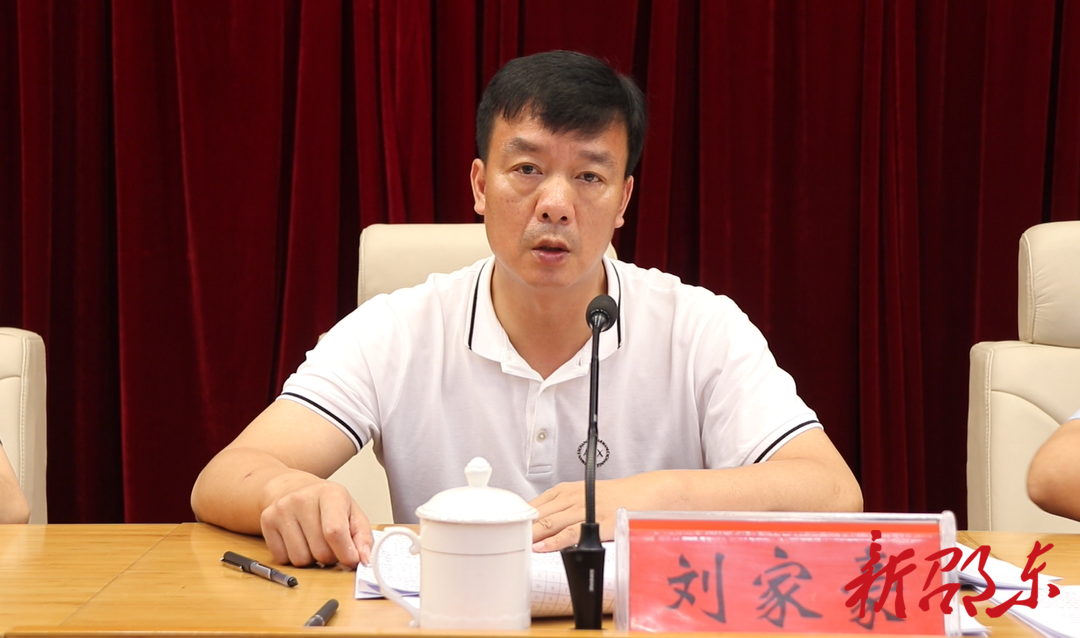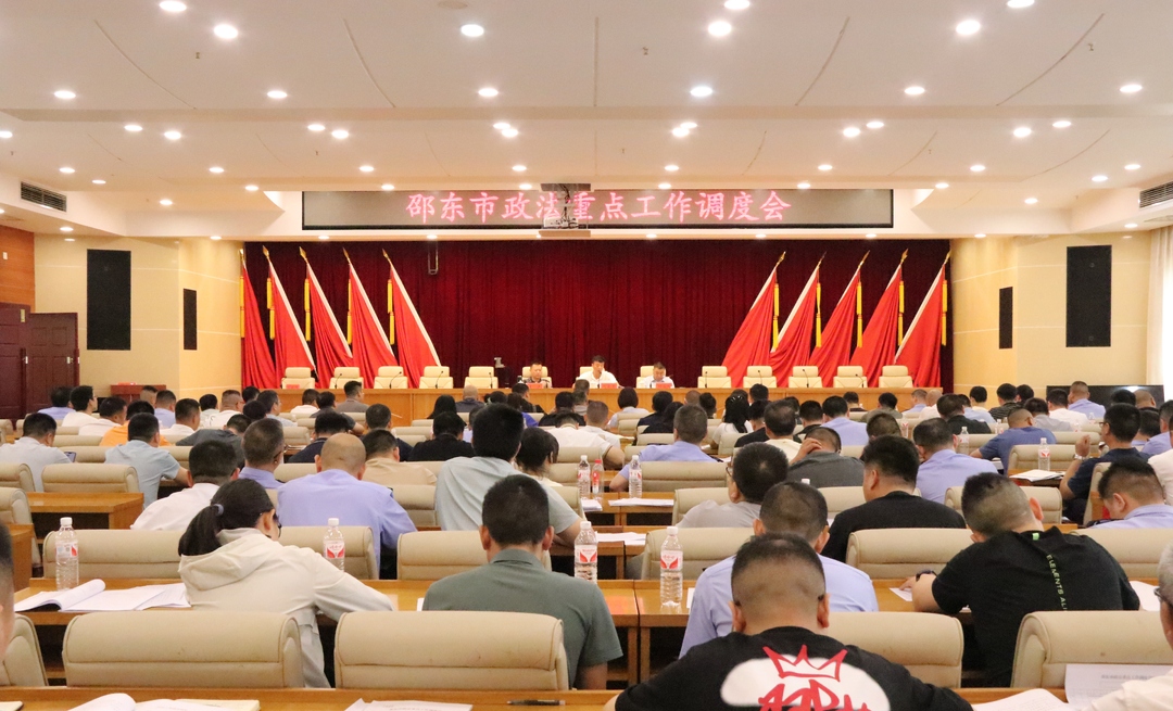 新邵东客户端6月20日讯(记者 曾超众)6月20日,邵东市召开政法重点工作调度会。市委副书记、统战部长刘家豪出席会议并讲话,市委常委、政法委书记刘山鸣主持会议。