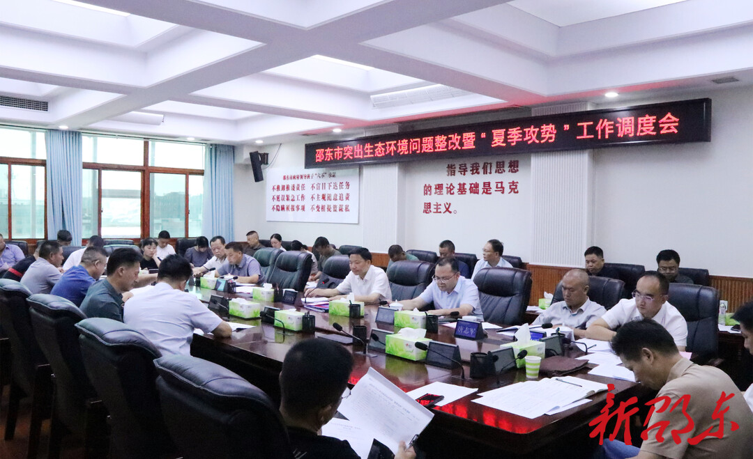 新邵东客户端7月19日讯(记者 曾超众)7月18日下午,邵东市委副书记、市长李国军主持召开突出生态环境问题整改暨“夏季攻势”工作调度会。他强调,全市上下要深学笃用习近平生态文明思想,切实扛起生态文明建设政治责任,高质高效抓好突出生态环境问题整改,扎实推进污染防治攻坚战“夏季攻势”,持续提升全市生态环境质量,为加快推动高质量发展和现代化建设提供坚强的生态保障。