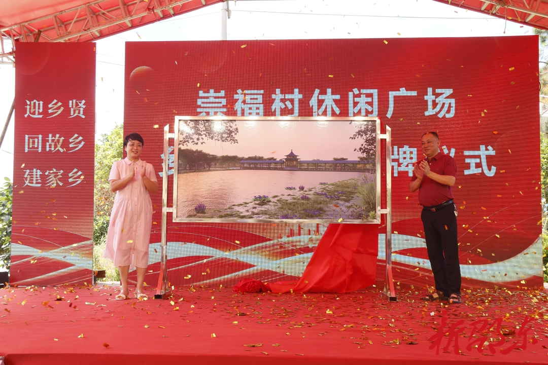 开工仪式上,与会领导和嘉宾为崇福村醉美休闲广场、乡贤路揭牌,并为最美乡贤颁奖。