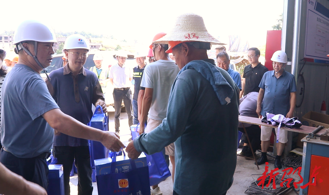 新邵东客户端7月25日讯(记者 刘意忠)工会送清凉,防暑保安康。7月25日,邵东市人大常委会副主任、市总工会主席曾铁钧率队来到犬木塘水库工程邵东灌区项目合台岭隧洞施工现场, 开展一年一度的夏送清凉活动 ,慰问在高温下工作的建设者。
