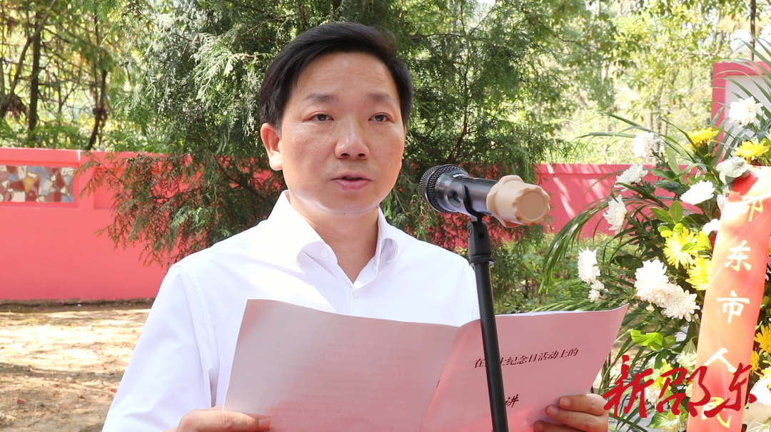 付凯军主持敬献花篮仪式,并号召大家继承和发扬英烈精神,砥砺前行,奋勇拼搏,苦干实干,奏响“爱我邵东”主旋律,以实际行动为邵东经济社会发展贡献应有力量。
