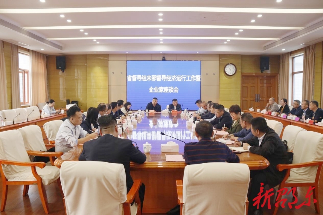 新邵东客户端11月6日讯(记者 张平华 实习记者 谢润新)11月5日下午,由省商务厅、省工信厅、省科技厅、省政府办公厅等部门相关负责人组成的省督察组,在湖南省商务厅副厅长杨中万的带领下,来邵东市调研督导经济运行工作。邵阳市副市长易洪海,邵东市委副书记、代市长付凯军,邵东市委常委、常务副市长陈业华,邵东经济开发区党工委副书记、管委会主任杨振明,邵东市副市长欧阳震等参加。