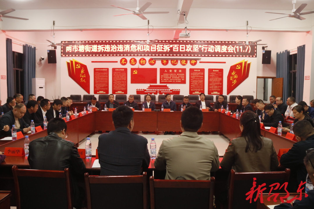 在随后召开的两市塘街道拆违治违消危和项目征拆“百日攻坚”行动调度会上,李国军、付凯军听取了两市塘街道工作情况汇报。10月底,邵东市开展拆违治违消危和项目征拆“百日攻坚”行动,两市塘街道闻令而动,第一时间组建落实执行指挥部,成立工作专班,制定实施方案,压紧压实责任,精准摸排,逐户施策,高效推进。截至11月7日,已签订协议153户,完成拆除77户160 间,将于11月8日全面完成协议签订清零任务,11月11日实现拆除清零。