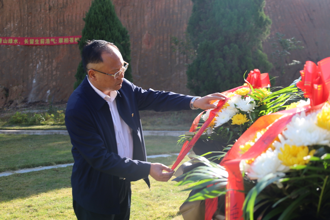 罗健康缓步上前整理花篮绶带,向永垂不朽的革命先烈表达敬意。随后,全体党员重温了入党誓词。