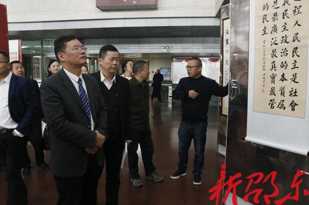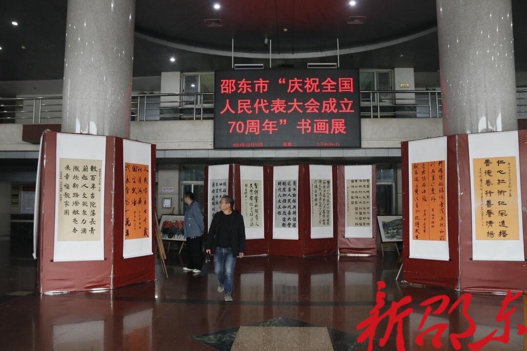 新邵东客户端12月3日讯(记者 张平华 实习记者 谢润新)12月3日,邵东市人大常委会在邵东市治机关大楼举办“庆祝全国人民代表大会成立70周年”书画展。市人大常委会党组书记、主任黄负平,市人大常委会领导贺铁民、曾铁钧等现场观展。