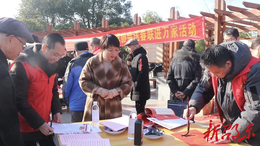 “我们组织书法家协会的骨干力量为市民免费书写春联,送福、送吉祥,明天在百富广场,后天在南苑广场也会开展相应的活动,欢迎广大市民前来领取春联。”邵东市书法家协会主席尹崇德表示。