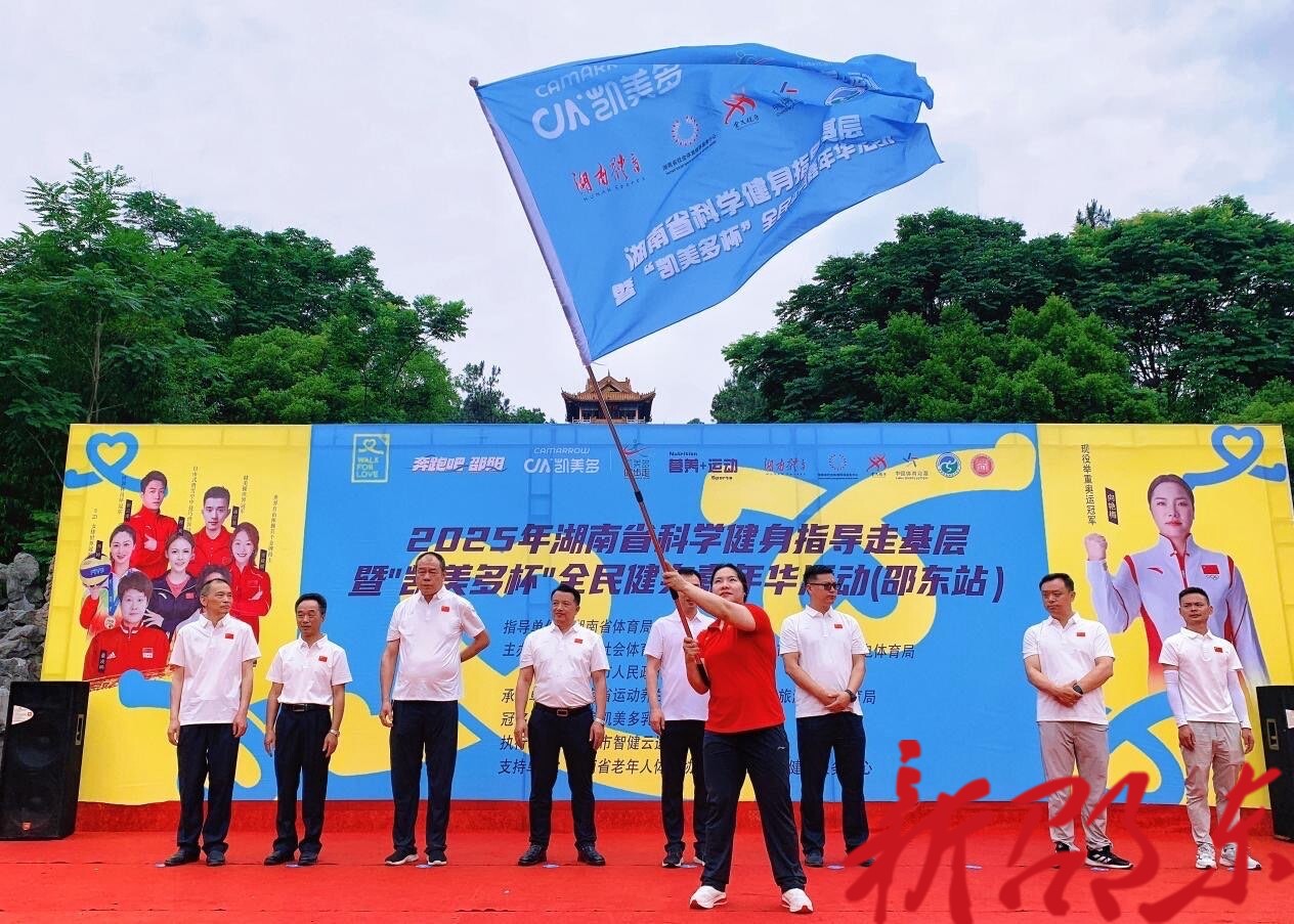 新邵东客户端5月23日讯(记者 谢润新 通讯员 王江梅) 5月22日,“2025年湖南科学健身指导走基层暨‘凯美多杯’全民健身嘉年华活动”在邵东市昭阳公园举行。现役奥运冠军,大满贯、世界纪录保持者向艳梅受邀领跑,吸引了近600名运动健身爱好者踊跃参与。湖南省社会体育指导服务中心副主任王飞、邵阳市文化旅游广电体育局副局长赵柳银、邵东市人民政府副市长谢辉伟等出席活动。