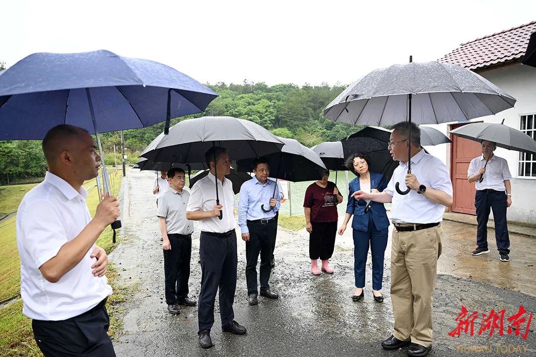 (6月23日,沈晓明在新宁县万塘乡高峰水库了解渗漏险情处置进展和管理责任落实等情况。)