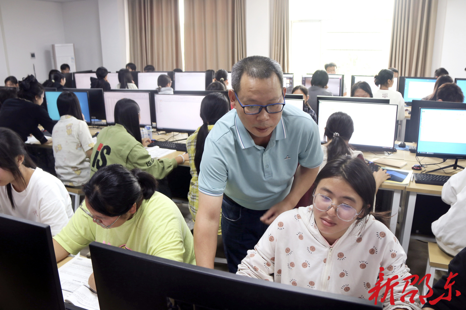 新邵东客户端10月10日讯(记者 邱文丽)9月23日,在邵东市职业中专学校的实训机房内,刘红新正穿行于一排排电脑之间,耐心指导学生进行计算机操作。