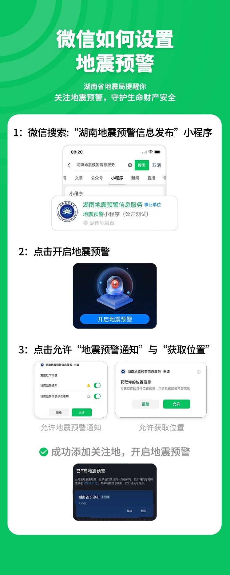 温馨提示:公众可关注政府有关部门发布的权威信息,科学辨别、自觉抵制谣言传播。如需获取地震预警信息,可关注湖南地震台微信小程序,设置接收地震预警信息。