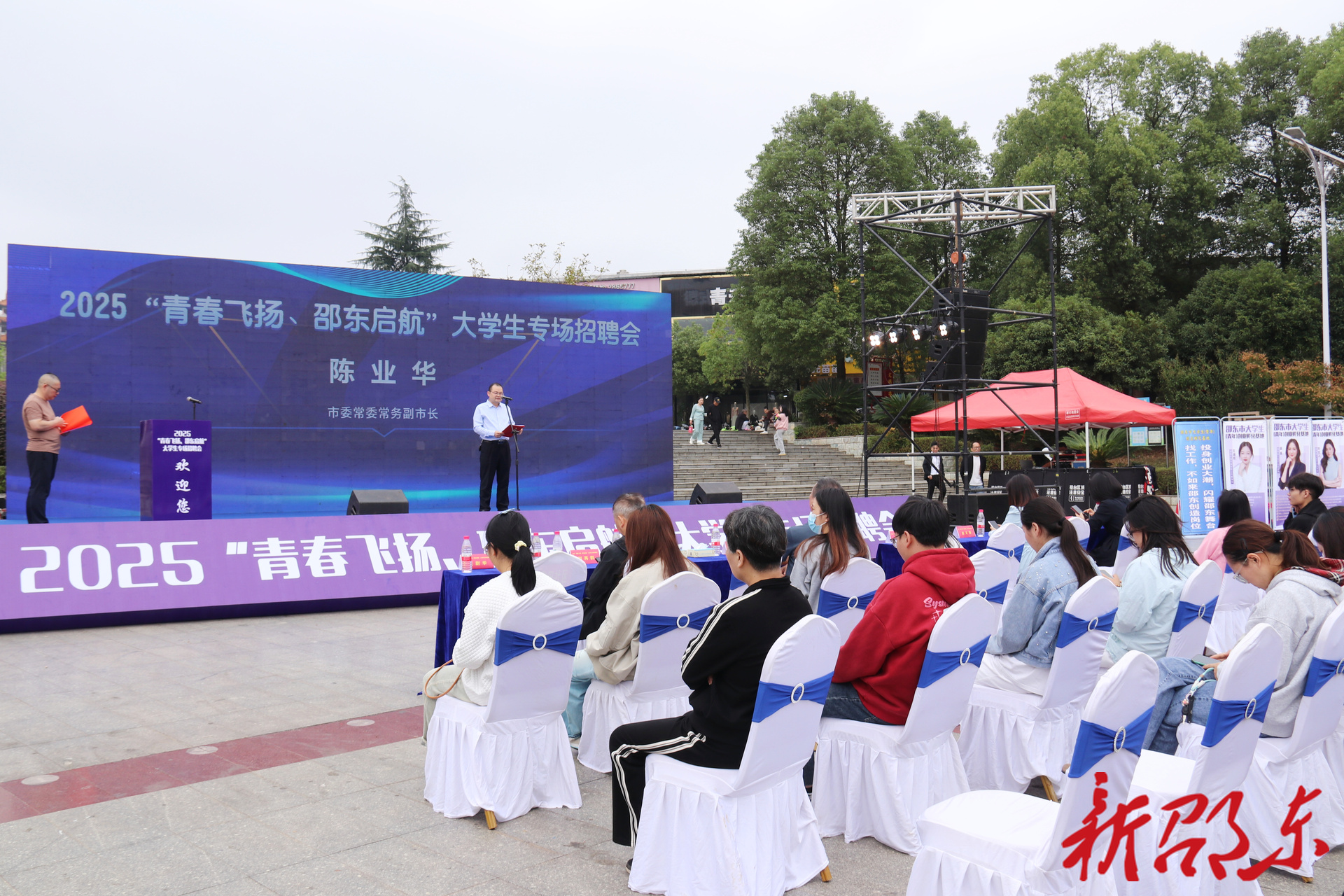 新邵东客户端10月17日讯(记者 刘意忠)10月17日上午,邵东市举行2025“青春飞扬 邵东启航”大学生专场招聘会。市委常委、常务副市长陈业华出席并宣布招聘会启动。