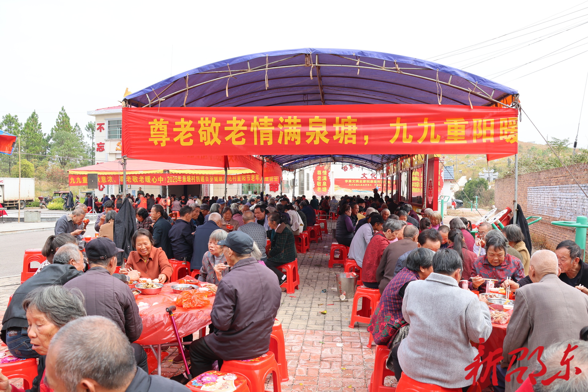 新邵东客户端10月30日讯(记者 曾超众 通讯员 彭栋)10月29日,邵东市大禾塘街道泉塘村举办重阳节活动暨第二届百叟宴,300余名年逾古稀的老人欢聚一堂,共度重阳佳节。