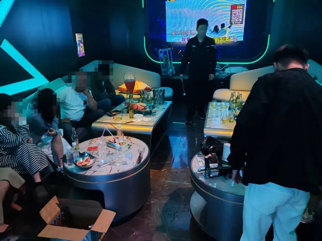 行动中,民警发现某KTV一包厢内情况异常,随即进行重点核查。进入此包厢后,民警发现在现场桌面上摆放着数个插着吸管的水瓶容器,且现场七人使用这些容器吸食了含有乙基氟氨酮及其他列管毒品成分的电子烟,检测结果均呈阳性。