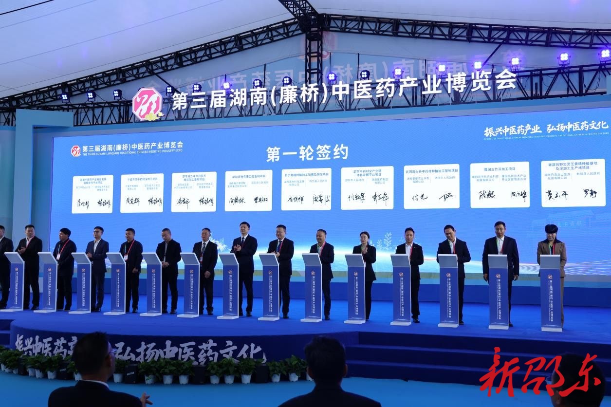 新邵东客户端11月8日讯(记者 曾超众 张平华 邓远 实习记者 刘姗姗 田云锋 王小丽)11月8日,第三届湖南(廉桥)中医药产业博览会在邵东廉桥医药工业科技园开幕。开幕式现场签订中医药项目18个,签约总金额14.51亿元。副省长蒋涤非宣布开幕。