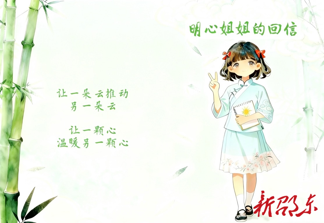 新邵东客户端12月9日讯(通讯员 肖珺)12月8日,邵东市黑田铺镇光明小学在全校集会上正式推出心理健康教育创新举措——引入虚拟人物“明心姐姐”作为学校心理咨询室的形象代言人,鼓励学生通过书信方式倾诉心声,构建温暖、安全的心理支持环境。