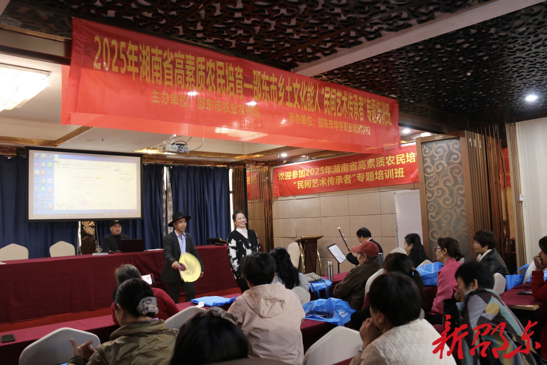 本次专题培训班由邵东市农业农村局主办、邵东市华宇职业培训学校承办,旨在深入贯彻落实国家关于乡村振兴战略与文化强国战略部署,推动乡村文化繁荣与产业振兴深度融合。培训主要聚焦邵东“车马灯”与“木偶戏”两项非遗瑰宝,特别邀请行业专家及省、市级非遗代表性传承人授课。培训采用理论授课与实践教学相结合的模式,内容涵盖高素质农民培育政策解读、邵东市民间艺术历史与现状、乡土文化的价值与时代意义、邵东特色非遗项目赏析与传习等多个方面,致力于构建乡土文化能人网络,以民间艺术激活乡村文化活力,推动邵东市乡土文化产业提质增效,为邵东市乡村全面振兴提供坚实的人才支撑和强大的文化动力。