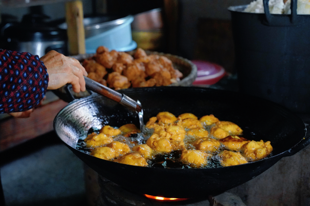 老式灶台的火苗跳动,油锅“滋啦”作响,这一锅炸黄炸,是刻在骨子里的年味。