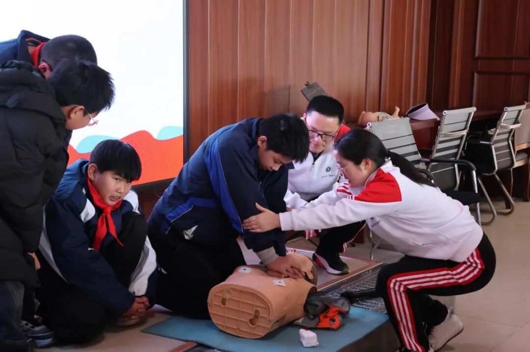 活动中,王丽丽结合校园场景与日常生活实际,用通俗易懂的语言、生动鲜活的案例,为学生们讲解心肺复苏、气道异物梗阻急救、意外伤害处置等急救知识,并现场示范教学,让抽象的急救知识变得直观易学,课堂氛围热烈有序。