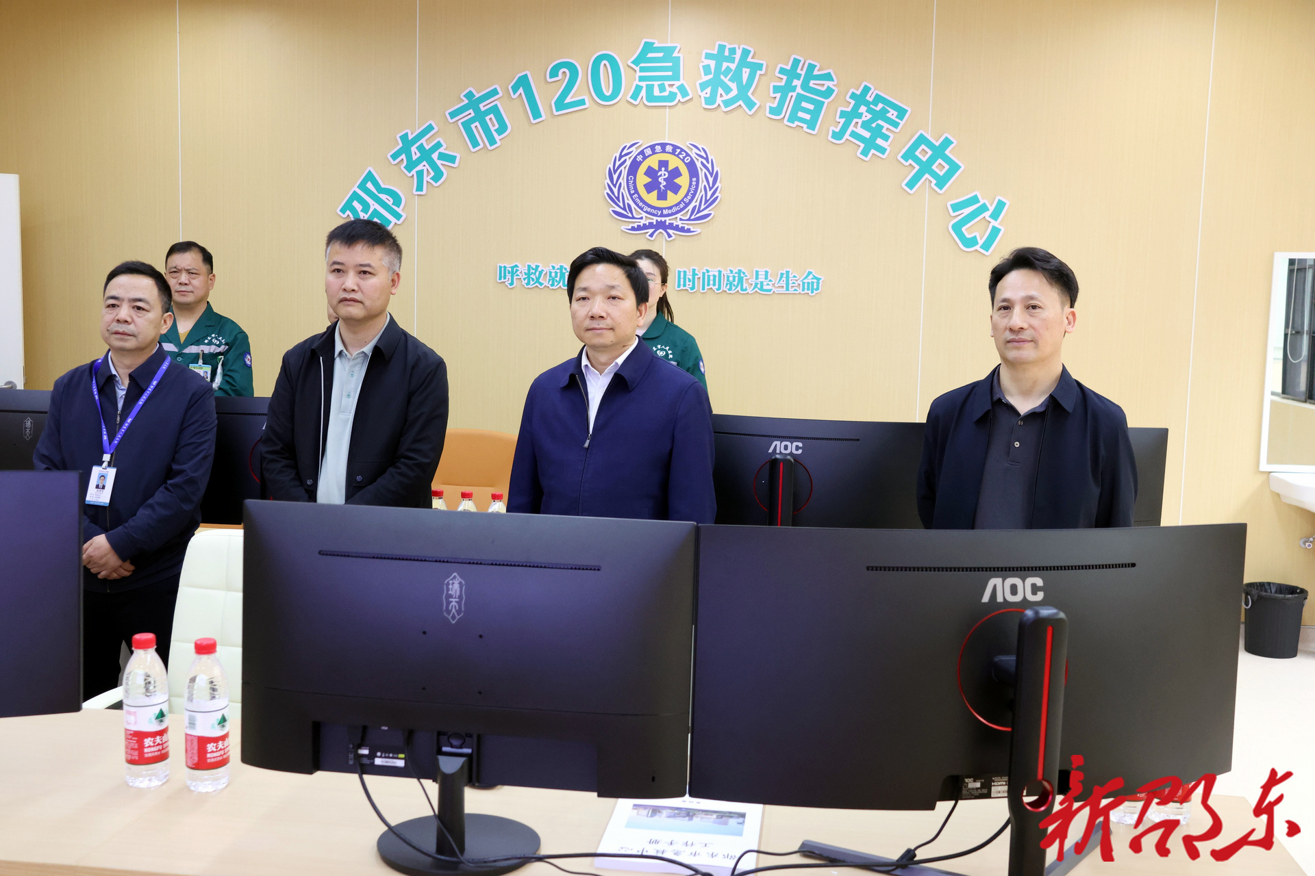 新邵东客户端4月16日讯(记者 张平华)4月16日,邵东市委书记李国军到城区调研全市120急救体系与心理健康服务体系建设工作。李国军强调,要深入学习贯彻习近平总书记关于卫生健康工作的重要论述精神,坚持人民至上、生命至上,聚焦群众急难愁盼,完善急救网络,建强心理服务阵地,全方位守护群众生命安全和身心健康。副市长曾会林参加。