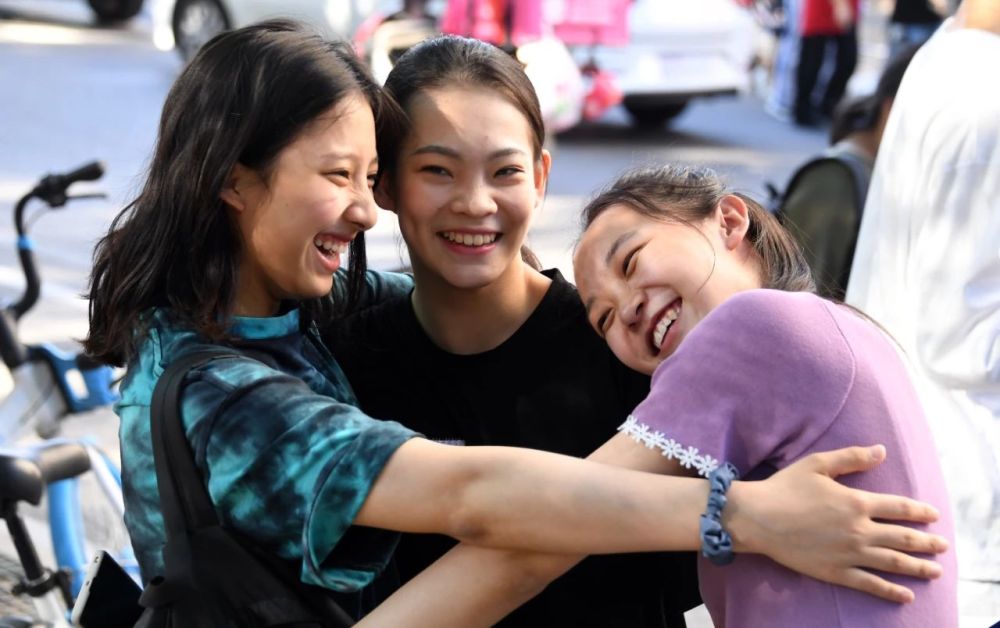 在北京市中关村中学考点外,考生结束考试后拥抱 任超 摄