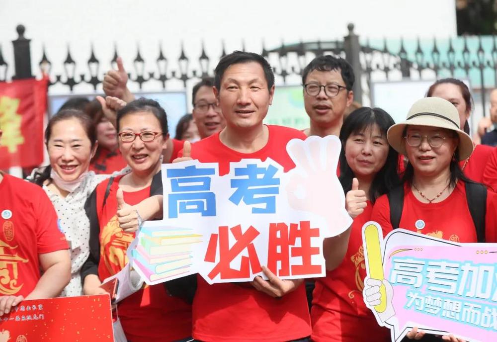 在沈阳市第七中学考点,家长们为孩子加油鼓劲 杨青 摄