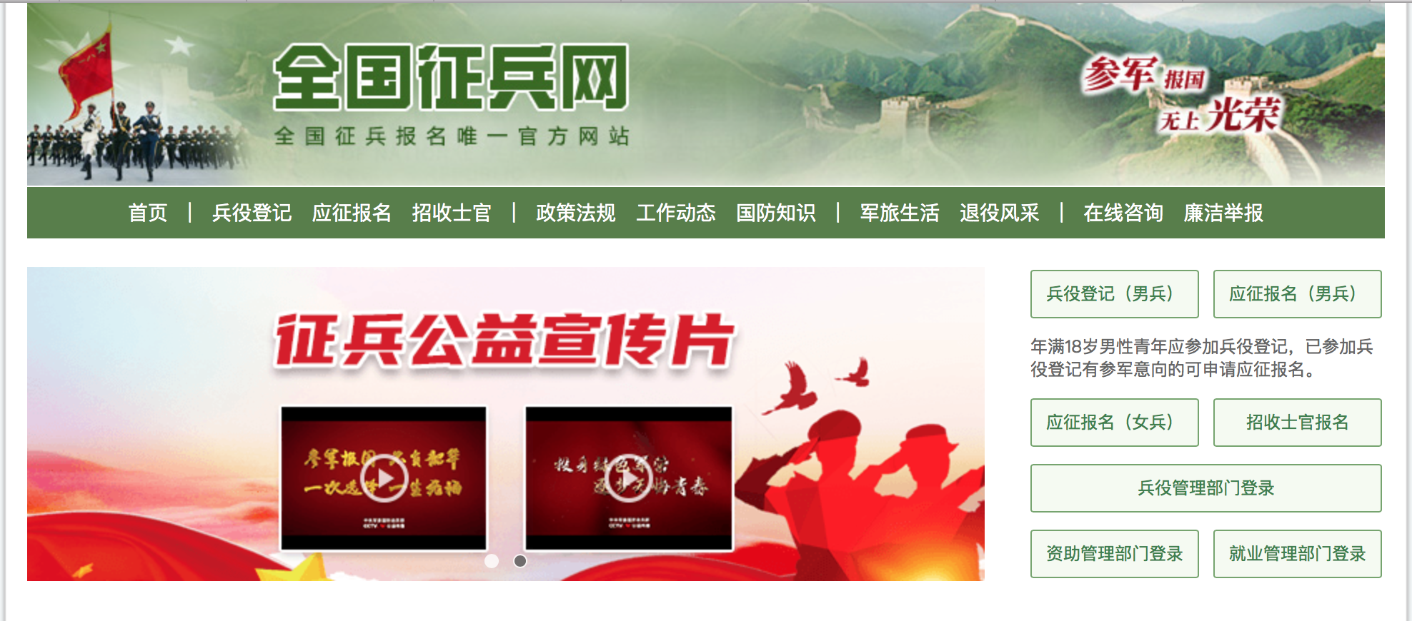 12月1日开通男兵应征报名窗口,之后全年均可报名。