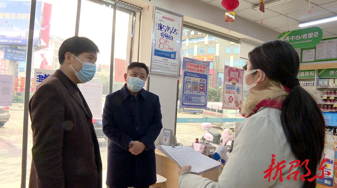 新邵东客户端2月8日讯(记者 曾超众)2月8日,邵东市委书记周玉凡带领副市长杨振明采取“四不两直”方式到社区、市场、车站、新冠疫情隔离观察点、药店等地督导疫情防控和安全生产工作。