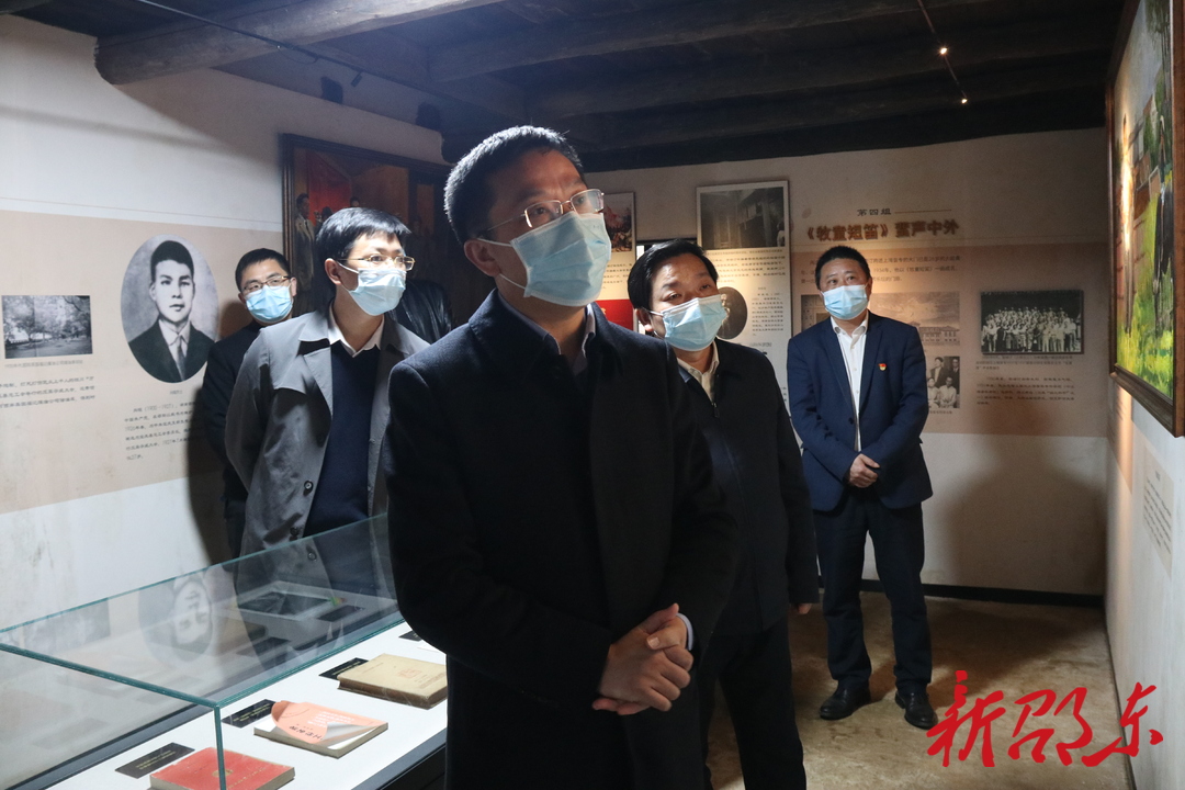 龚红果在九龙岭镇绿汀村贺绿汀生平事迹陈列馆调研。