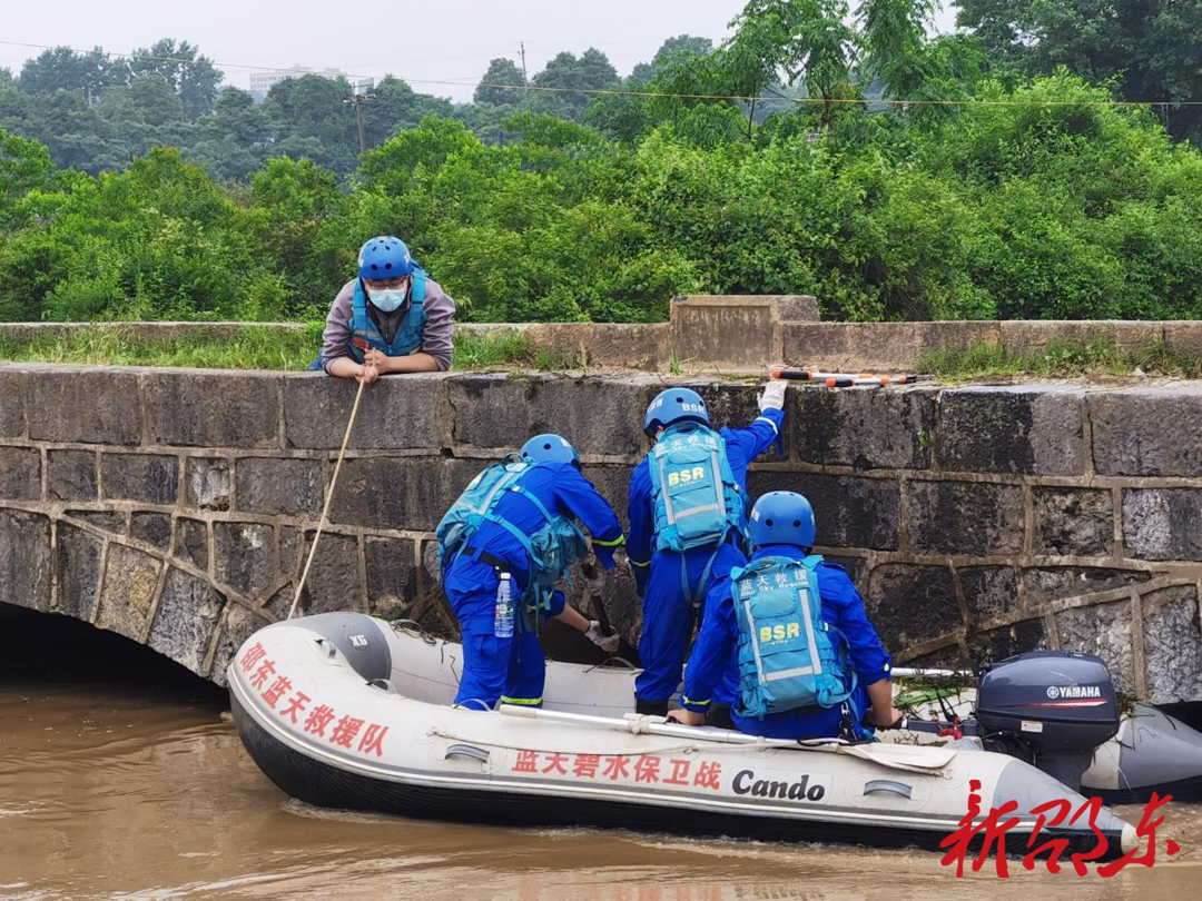 新邵东客户端5月11日讯(通讯员 卿喜明 周慧)5月9日-10日,邵东市普降暴雨,市防汛抗旱指挥部紧急启动防汛Ⅳ级应急响应。为确保河道行洪畅通及桥梁安全,在接到大禾塘街道河长办关于桐江河段余桥桥洞已被上游冲下来的障碍物堵塞、严重影响行洪的电话后,邵东市蓝天救援队立即组织队员、启运装备前往疏通。