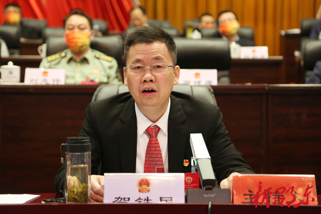 杨肇晖指出,2021年,是我市经济社会发展中极不平凡的一年。在中共邵东市委的坚强领导下,全市上下一心,积极应对新冠疫情的严重冲击,圆满完成市乡两级换届,统筹推进经济社会发展,迈出了“十四五”开局稳健第一步。一年来,市人大常委会坚持以习近平新时代中国特色社会主义思想为指导,全面贯彻党的十九大和十九届历次全会精神,坚持党的领导,始终坚定正确政治方向;坚持服务大局,助推经济高质量发展;坚持履职为民,切实增强监督实效;坚持组织引领,充分发挥代表主体作用;坚持苦练内功,持续锻造过硬人大队伍,主动担当作为,依法履职尽责,为推进邵东经济社会发展和民主法治建设作出了积极贡献。