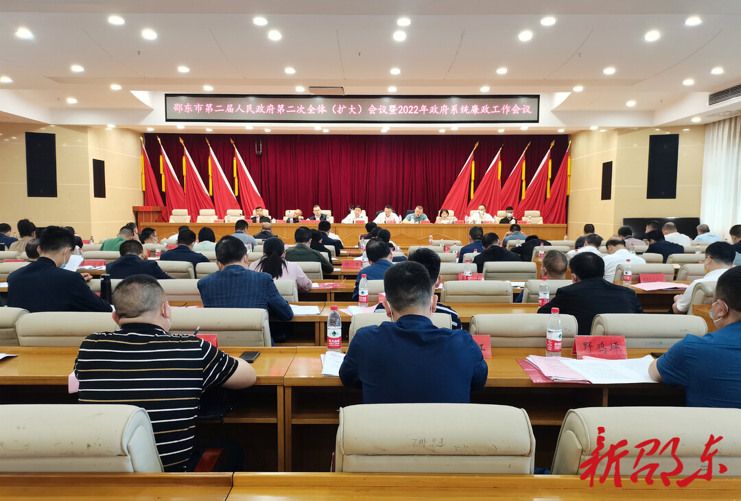 新邵东客户端5月27日讯(记者 刘意忠)5月26日下午,邵东市第二届人民政府举行第二次全体(扩大)会议暨2022年政府系统廉政工作会议,传达贯彻中央及省、市委经济工作会议精神,国务院、省政府廉政工作会议精神,邵阳市政府全会及邵东市“两会”精神,对《政府工作报告》确定的目标任务进行分解,动员全市上下齐心协力真抓实干,全面完成全年各项目标任务。