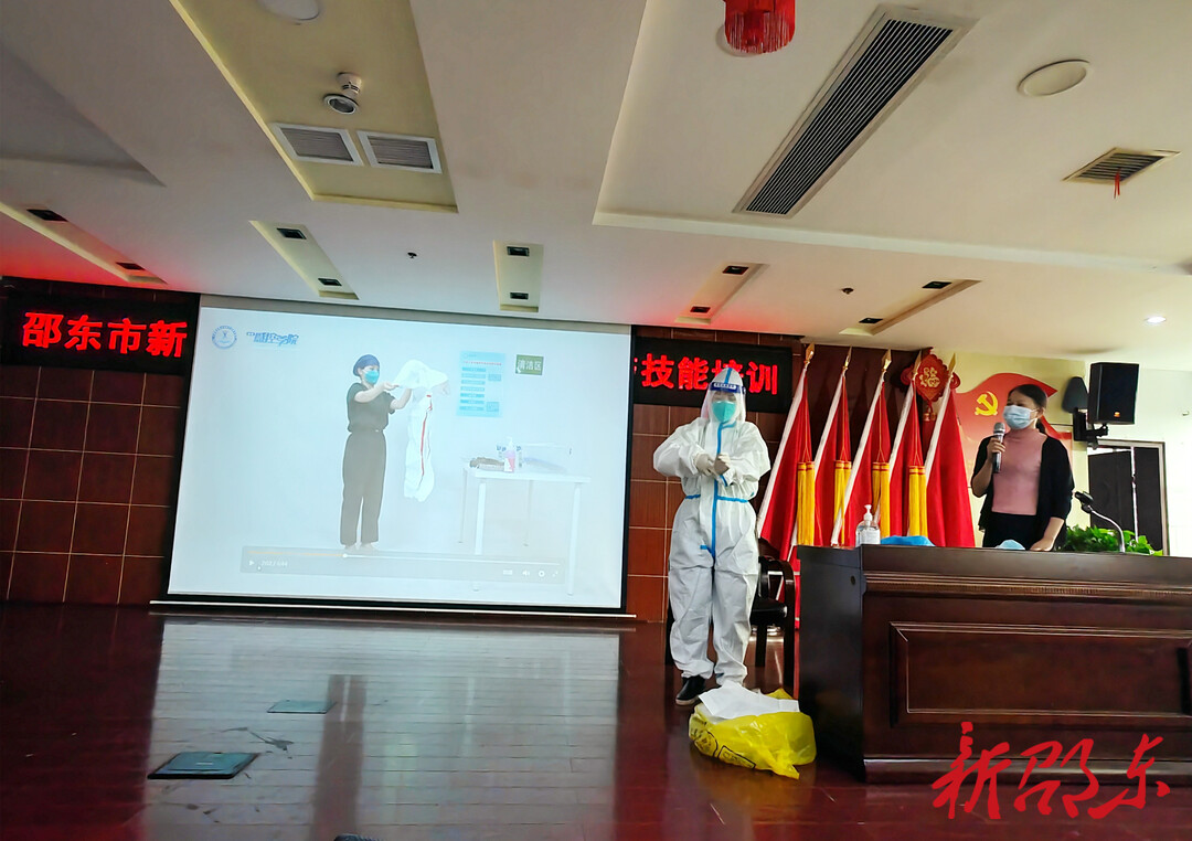 培训会特邀邵东市医疗救治、隔离场所管控、核酸检测、发热门诊定点医院规范化管理等方面专家授课,重点就定点医院、发热门诊规范化设置与管理要求,院感管理基本要求,隔离场所规范化设置与管理要求解读,核酸检测相关工作要点、采样、信息录入质量控制,核酸检测质量控制,基本防护操作等内容和相关知识进行授课讲解。课中演示了防护服的正确穿脱方法,对穿脱顺序及注意事项进行重点讲解。培训结束后,所有参训人员集中进行了闭卷理论考试与穿脱防护服等操作考核。
