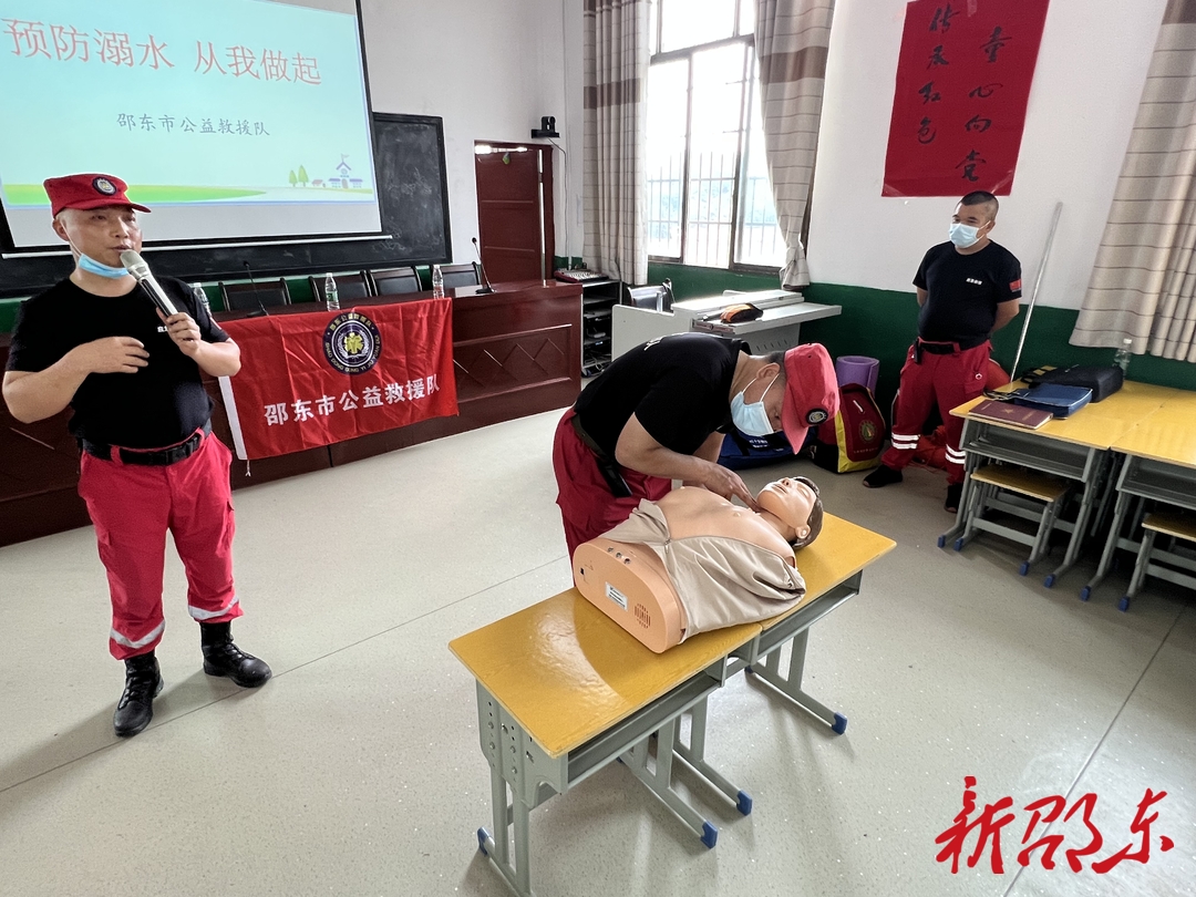 活动中,邵东市公益救援队还向到场师生们开展了防溺水知识讲座。
