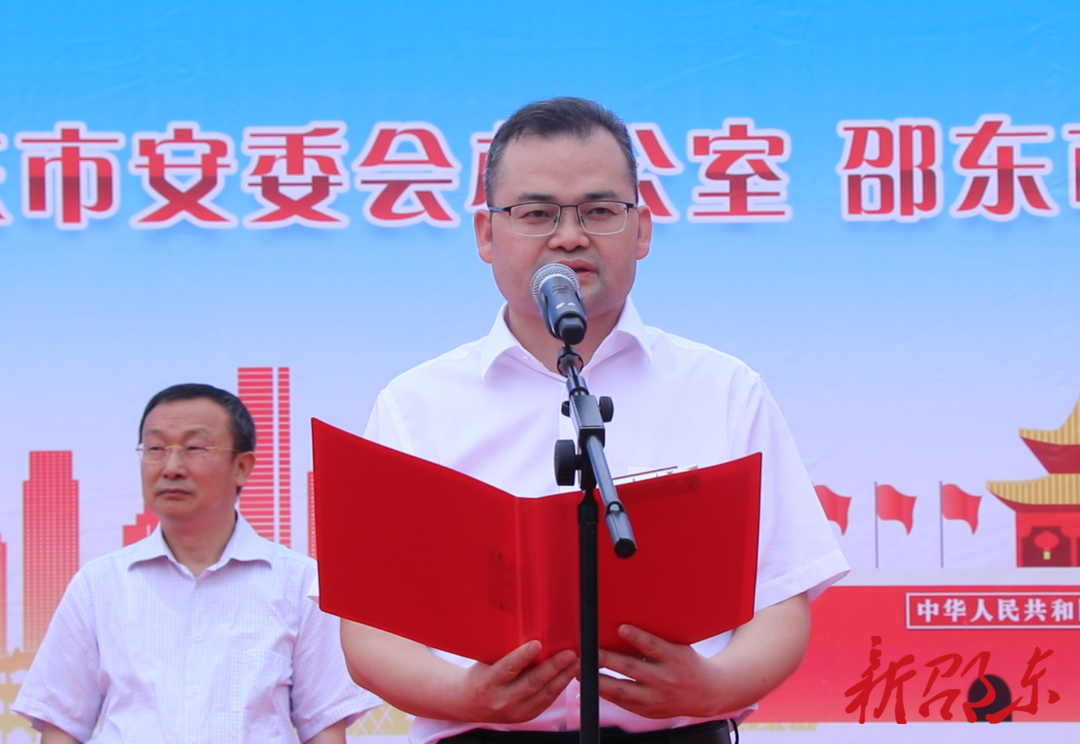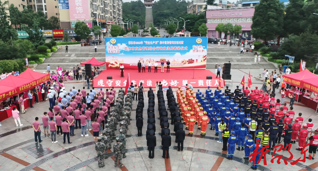 新邵东客户端6月16日讯(记者 肖帅男 姚天启)今年6月是全国第21个“安全生产月”,6月16日上午,邵东市举行2022年“安全生产月”集中宣传咨询日活动暨邵东市应急管理综合行政执法局着装仪式,正式成立应急管理综合行政执法局。市委常委、常务副市长陈业华出席仪式,为邵东市应急管理综合行政执法局授旗并讲话,市人大常委会副主任曾铁钧、市政协副主席谢光远参加活动。