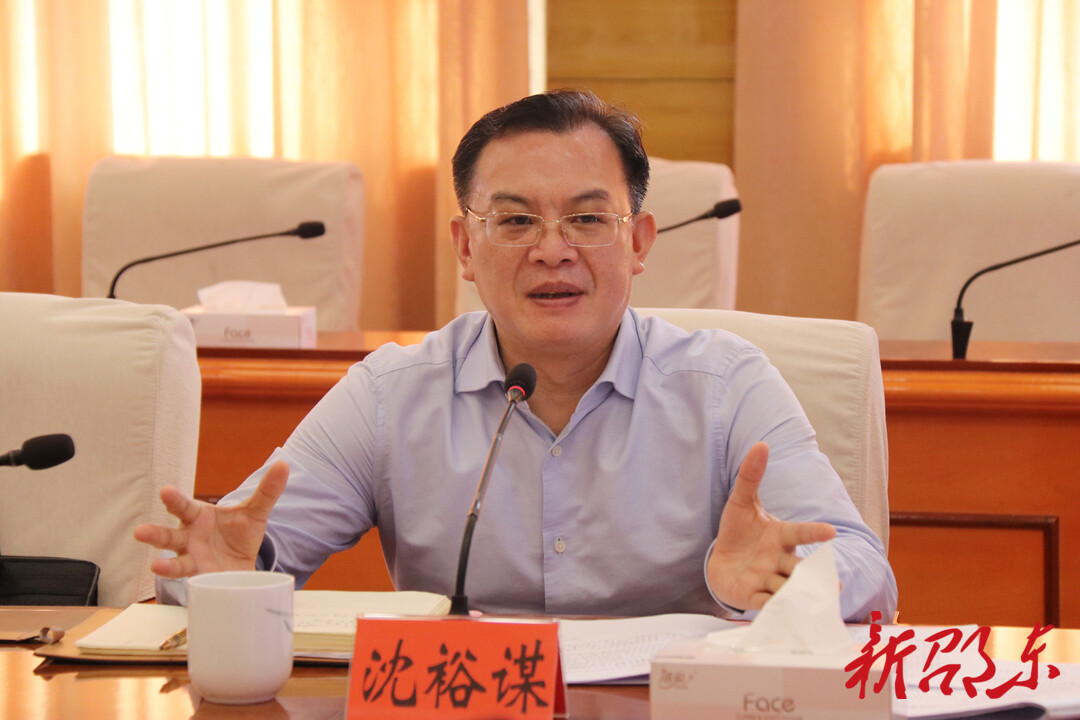 在下午召开的座谈会上,沈裕谋分别听取了邵阳市、邵东市商务和开放型经济工作情况汇报。他表示,邵东发展思路清、改革路子准、领导班子强、工作质效好,值得充分肯定。沈裕谋强调,邵东市要混合动力稳增长、综合施策防风险、尽力量力保民生,向改革要活力、向创新要动力、向发展要实力,切实扩稳外贸、促消费、抓招商。要紧紧围绕“12345”工作思路抓落实,聚焦“五个重大”发力,即抓好各项重大指标;用好经济开发区等重大平台;用好用足各项重大政策;积极参与重大展会;狠抓重大项目。