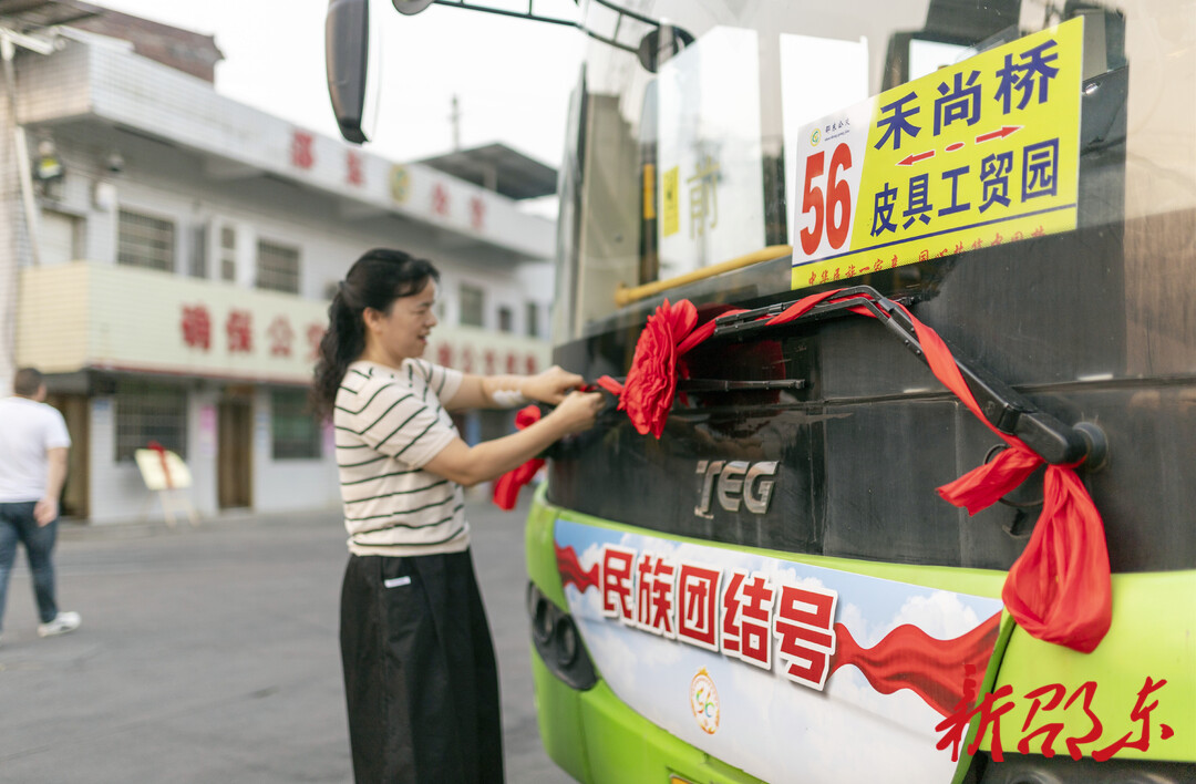 邵东市根据城市公交车辆流动性强、接触面广、影响力大的优势,能够在最大范围、最广层面内提升团结进步宣传效果,让广大市民在出行中感知中华民族优秀传统文化的精神力量,在潜移默化中不断涵养公民文明道德素养,更好地把休戚与共、荣辱与共、生死与共、命运与共的中华民族共同体意识根植于各族群众的心田,筹备开通了“民族团结号”公交专线,取名56路,寓意56个民族手足相亲、守望相助,团结一致、同心向党,结成牢不可破的命运共同体。邵东市公汽公司围绕“构筑中华民族共有精神家园”,对车身、车厢、候车亭、站牌、语音播报等进行一体化宣传布置。“民族团结号”公交专线行驶线路途经邵东市主要商圈、学校、医院、社区及行政单位。