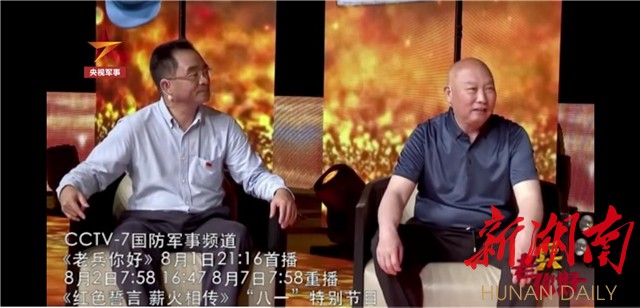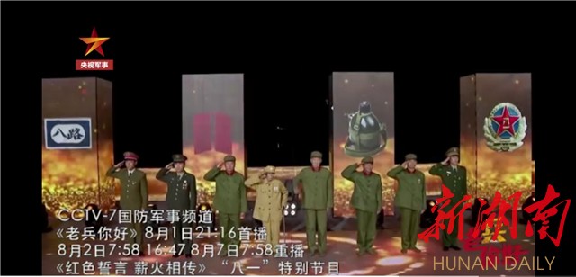 8月1日21时16分,《老兵你好》八一特别节目“红色誓言 薪火相传”在央视CCTV-7国防军事频道首播。时长3个半小时的节目,讲述了8位浏阳老兵的故事:其中有经历过枪林弹雨的抗美援朝老兵、在雪豹突击队服役过的军中精英、带领乡亲脱贫致富的退役军人……