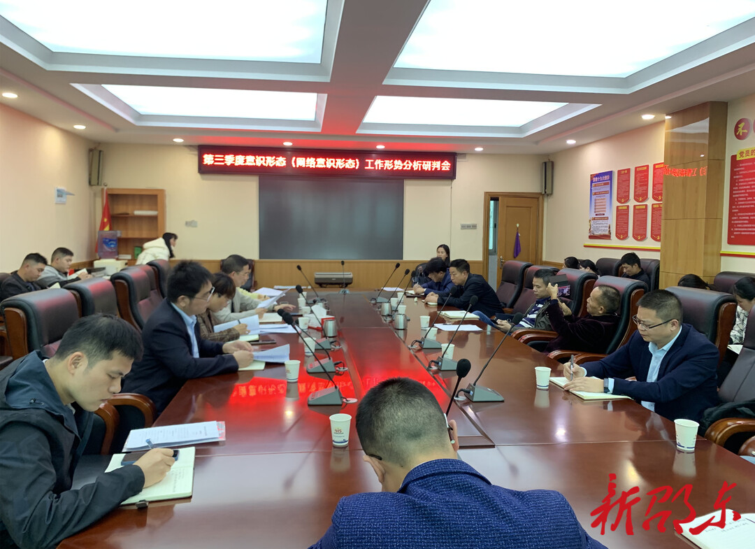 新邵东客户端10月9日讯(通讯员 唐冉)10月8日下午,邵东召开全市第三季度意识形态(网络意识形态)工作形势分析研判会,分析研判全市当前意识形态和网络意识形态领域形势,谋划部署党的二十大期间及下阶段宣传思想和意识形态工作。市委常委、宣传部部长罗莉出席并讲话,市宣传思想暨意识形态领导小组成员单位、市直相关单位分管负责人参加会议。
