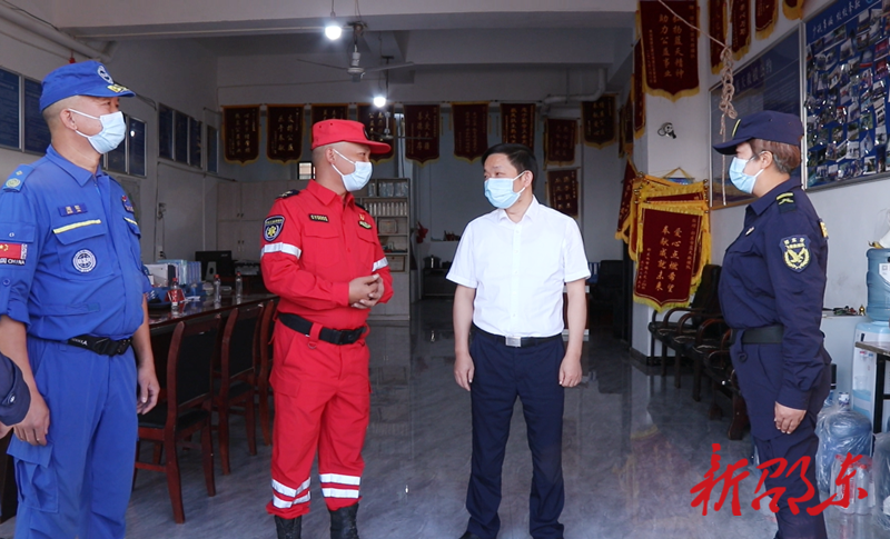 新邵东客户端10月19日讯(记者 肖帅男)10月18日下午,邵东市委副书记、市长李国军一行来到邵东蓝天救援队指挥中心看望慰问蓝天救援队、飞鹰救援队、公益救援队3家社会救援队伍。