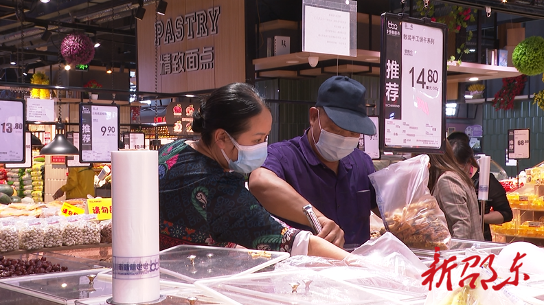 26日上午,在步步高超市、天沃晟超市,大米、粮油各类物资充足,市民正在购买猪肉、新鲜蔬菜。
