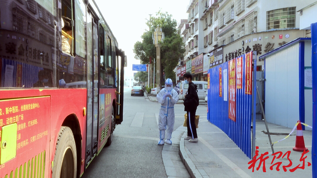 新邵东客户端11月3日讯(记者 邓远)11月1日上午,在维纳斯国际酒店集中隔离点,邵东公汽公司两辆转运车辆正在有序医学观察期满的隔离人员进行转运,送他们安全回家。
