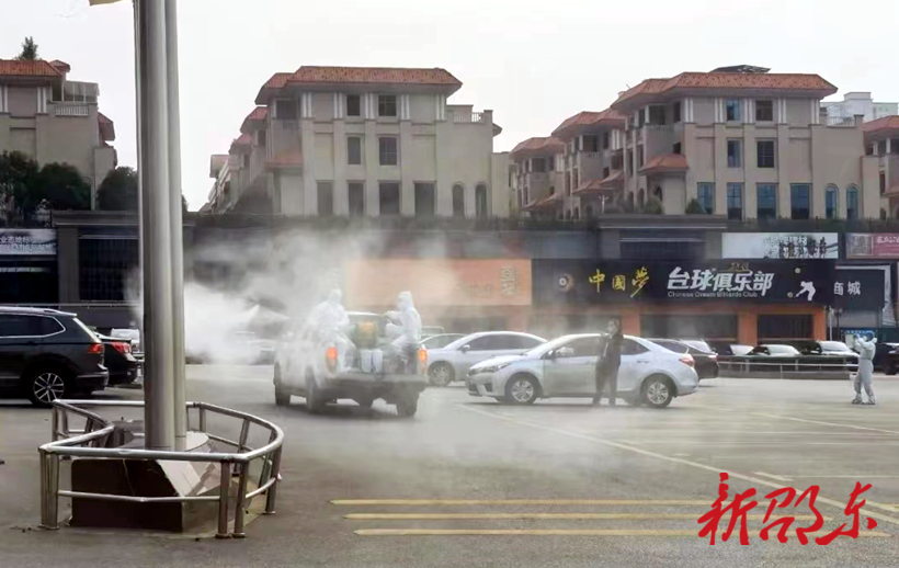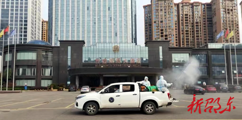 新邵东客户端11月5日讯(通讯员 赵宇峰 邓祎可 刘小咪)11月3日至4日,邵东市飞鹰救援队赶赴城区重点场所开展消杀工作。在商超、菜市、中风险控制区、隔离酒店等场所,队员们身着防护服,手持消杀枪,坚持无死角消杀,从严从细为群筑牢“防护墙”。两天共消杀面积约140000平方米,涉及11个商超菜市场与17个封控区、7个隔离酒店。