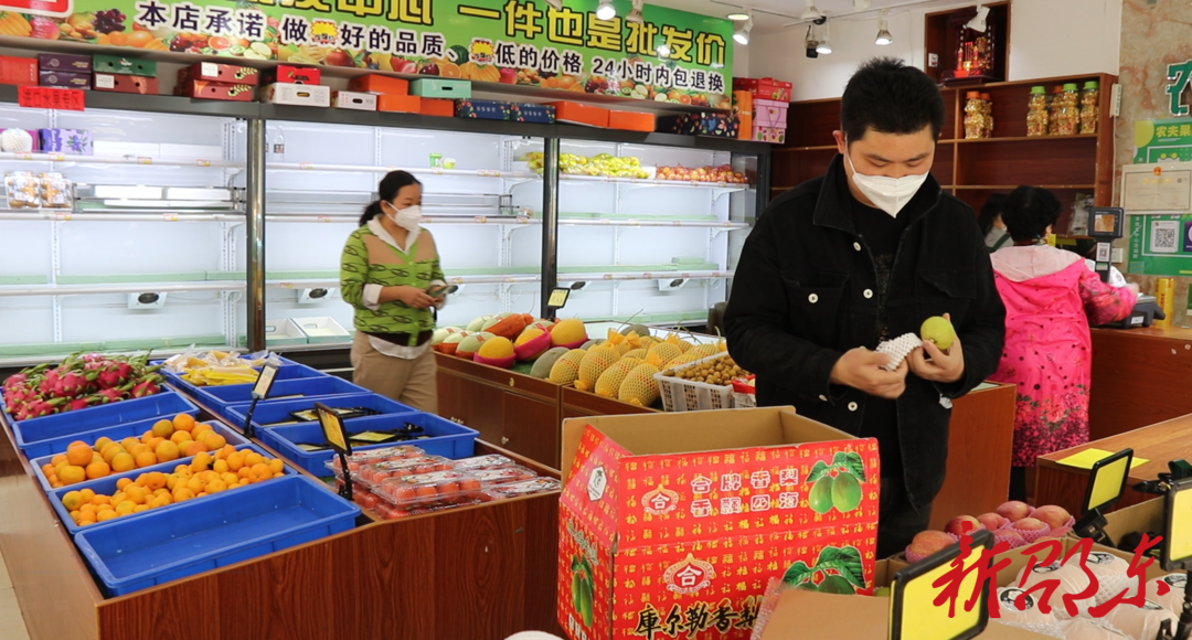 零食店、水果店里,顾客选购商品、结账