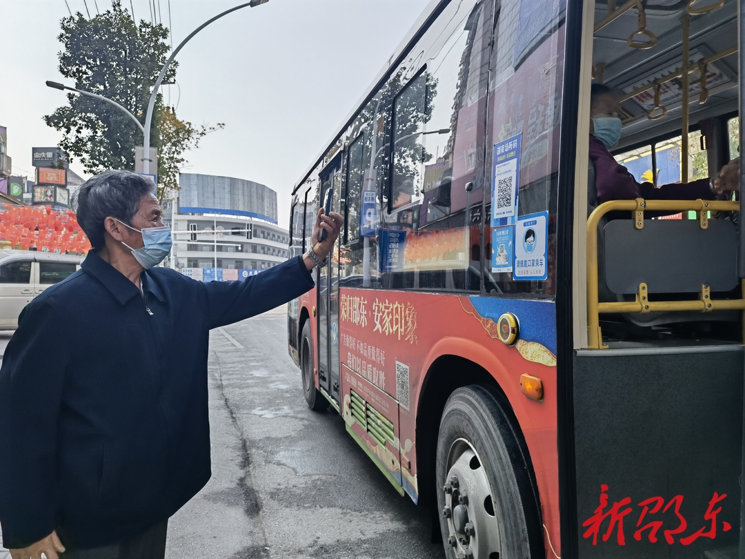 衡宝路上,一位老人扫码乘坐公交车