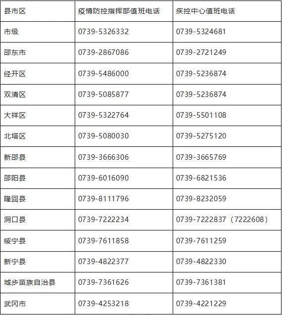 各县(市、区)疫情防控指挥部和疾控中心疫情值班电话