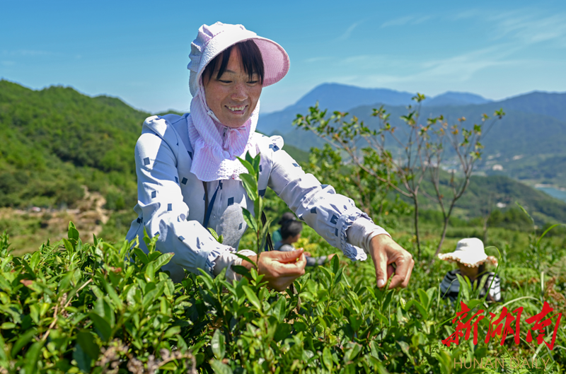 9月5日,平江县南江镇凤凰山村,建档立卡户杨业群在采茶。湖南日报·新湖南客户端记者 唐俊 摄