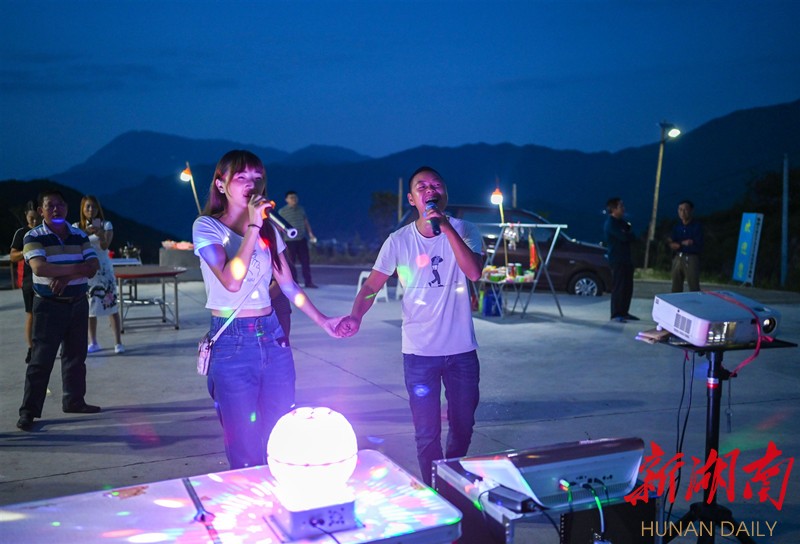 9月5日,平江县南江镇凤凰山村,“90后”夫妻余发富(前右)、李昌香(前左)经营一家露天吧。 湖南日报·新湖南客户端记者 唐俊 摄